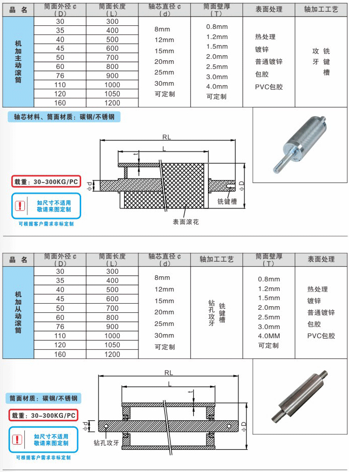 3、滾筒材料及表面處理 :