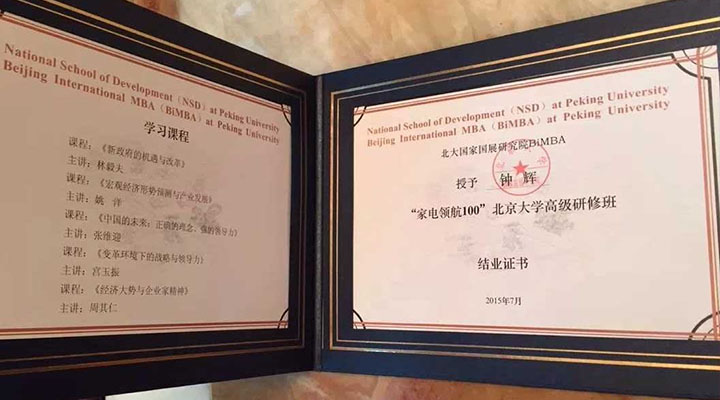同時(shí),經(jīng)過一年的學(xué)習(xí)和相處,“家電領(lǐng)航100”北大班的同學(xué)們迎來了結(jié)業(yè)的日子。匯利興集團(tuán)董事長鐘輝為此次畢業(yè)學(xué)員,中國慧聰家電城董事總經(jīng)理宋冰晨先生為“家電領(lǐng)航100”北大班的同學(xué)們頒發(fā)結(jié)業(yè)證書。