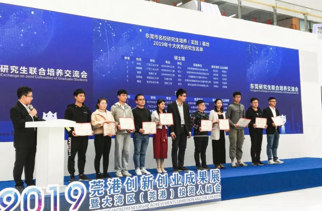活動中,東莞市為2019年十大優(yōu)秀聯(lián)合培養(yǎng)研究生頒獎,并對2019年東莞市研究生培養(yǎng)工作站進行授牌。此外,還舉行了東莞市2020年研究生聯(lián)合培養(yǎng)專業(yè)領域發(fā)布會。在研究生聯(lián)合培養(yǎng)項目路演活動中,展示了眾多研究生聯(lián)合培養(yǎng)的科技成果,例如交互式高透明全息顯示膜與系統(tǒng)、輕量化康復動力外骨骼、AI賦能預診斷工具等。