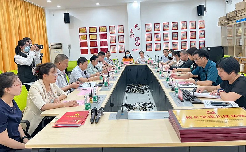 隨后,在黨員活動室上舉行主題活動學習交流會,許書記向廣東女院黨支部黨員同志表示熱烈歡迎。他指出,在企業黨建與思想政治教育工作情況,以黨建引